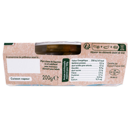 Plat à base de légumes, riz et cabillaud avec morceaux - Aliment pour bébés