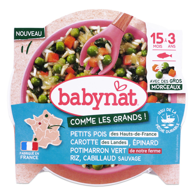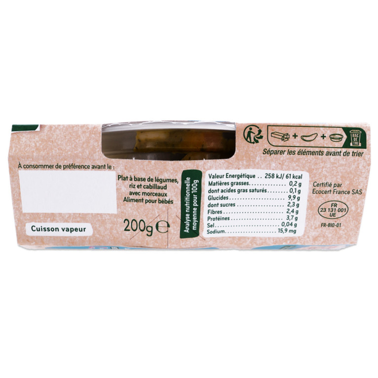 BABYBIO PLAT PRÉPARÉ PETITS POIS CAROTTE POTIMARON RIZ CABILLAUD