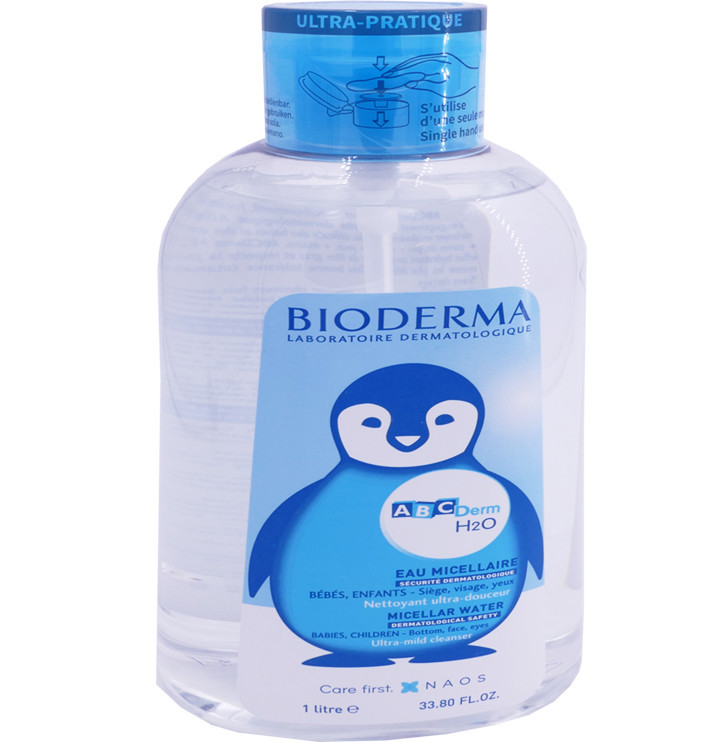 EAU MICELLAIRE H2O ABCDerm discount des laboratoires BIODERMA, le soin d’hygiène douceur dans votre parapharmacie en ligne à prix discount, qui nettoie en douceur toute les peaux même les plus fragiles sensibles des bébés et des enfants dès la naissance (sauf prématurés). Visage, yeux, mains, zones de plis, siège.
