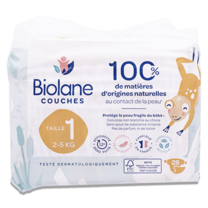 BIOLANE COUCHE T1 2-5 KG 28 COUCHES est en vente en ligne sur le site de votre parapharmacie à prix discount, offrant une protection douce et efficace pour les bébés pesant entre 2 et 5 kg.