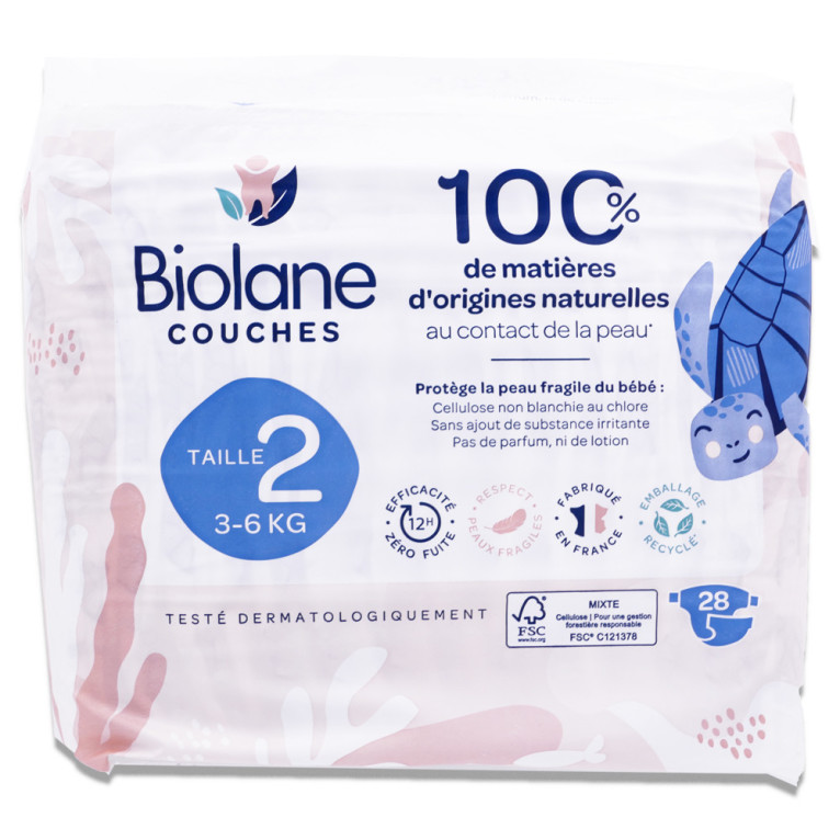 BIOLANE COUCHE T2 3-6KG 28 COUCHES est en vente en ligne sur le site de votre parapharmacie à prix discount, offrant une protection douce et efficace pour les bébés pesant entre 3 et 6 kg.