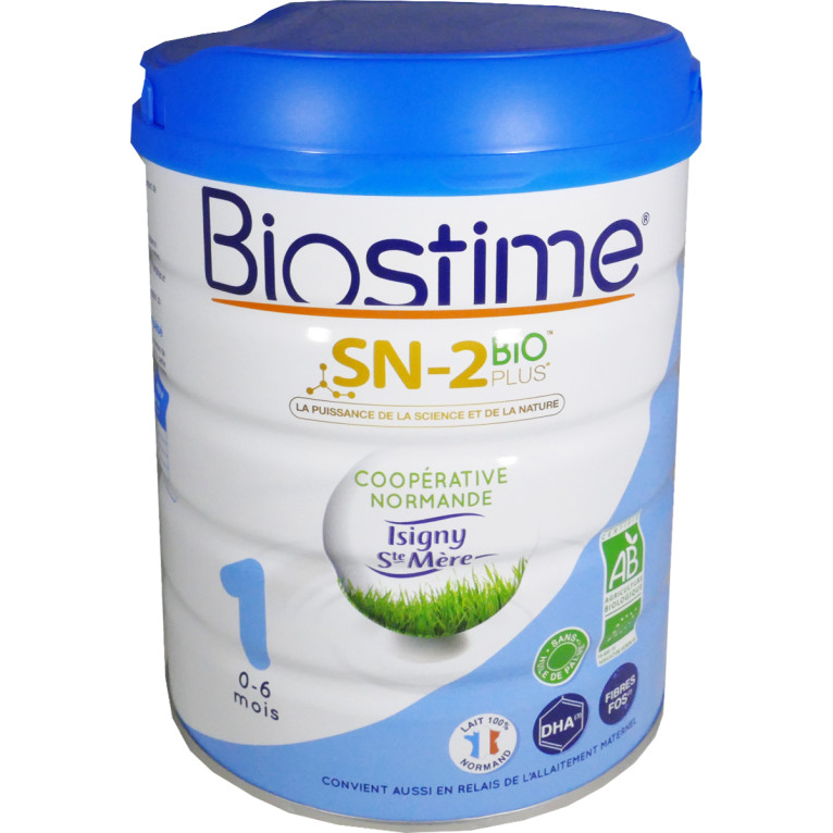 Les Laits infantiles bio de BIOSTIME sont des laits de suite ou de croissance bio sans huile de palme pour un sevrage tout en douceur. L’huile de palme remplacée par la crème de lait d’Isigny Sainte-Mère est naturellement plus riche en SN2-palmitate pour le respect de la croissance des petits. Élaborés en Normandie ces laits qui viennent de vaches élevées en plein air et nourries avec de l’herbe des près et des fourrages biologiques, prennent soin de la santé des nourrissons en apportant les nutriments nécessaires. Le lait BIOSTIME 1 SN-2 BIO PLUS est issu du lait de vache bio, composé de ferments lactiques bifidus, de fibres FOS, de DHA (oméga 3), de vitamines et minéraux (dont la vitamine D, A et C, le fer et le calcium). Cette composition va participer au bon développement de bébé.
