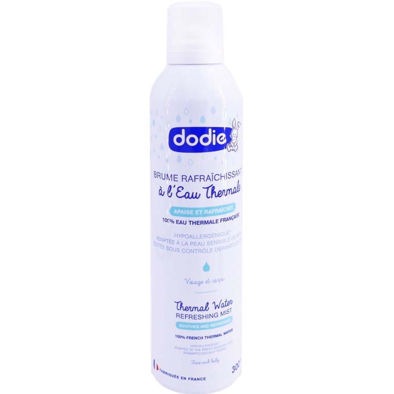 La Brume Rafraîchissante à l’Eau Thermale discount de DODDIE, le soin apaisant dans votre parapharmacie à prix discount, qui rafraîchit, hydrate et apaise la peau fragile des bébés. Visage et Corps. Dès la naissance.