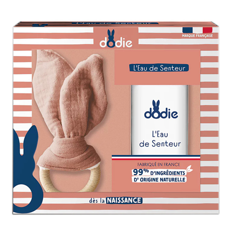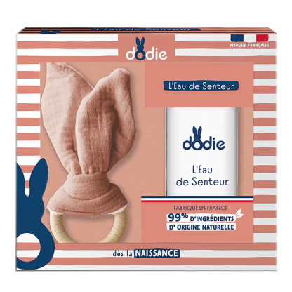 DODIE COFFRET L'EAU DE SENTEUR est en vente en ligne sur le site de votre parapharmacie à prix discount, proposant une eau de senteur douce pour bébé et un doudou de dentition adapté à la peau délicate des tout-petits.