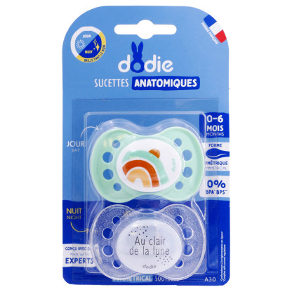 DODIE SUCETTES ANATOMIQUE JOUR ET NUIT 0-6 MOIS LOT DE 2 SUCETTES