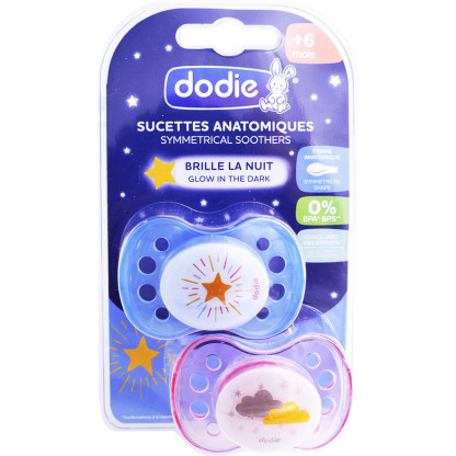 DODIE SUCETTES ANATOMIQUES NUIT 6MOIS+ LOT DE 2