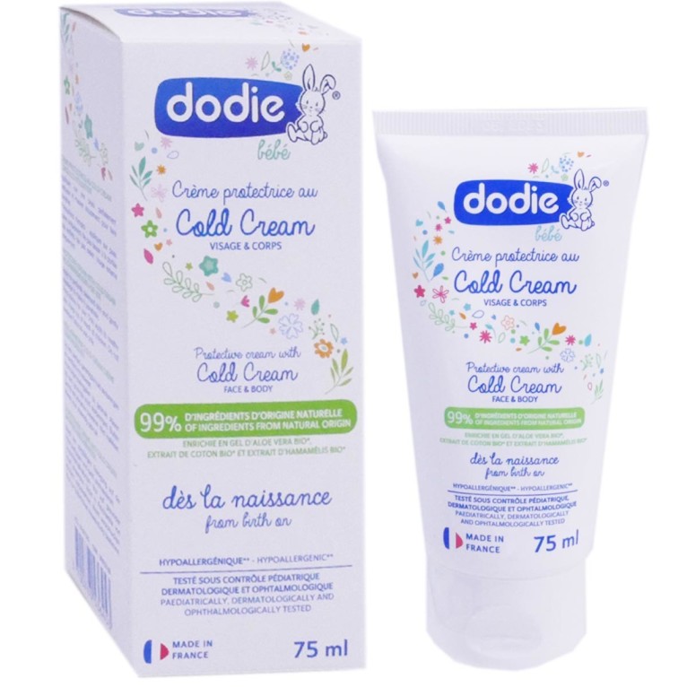 Depuis 1958, DODIE innove dans des produits performants de petite puériculture. N°1 en France, la marque est la référence en matériel de petite puériculture en étant attentif aux besoins des mamans et de leurs bébés afin d’offrir des produits toujours plus pratiques, simples et sûres qui suivent l’évolution des bébés. La Crème au Cold Cream visage et corps est composée de 99% d’ingrédients d’origine naturelle (Gel d’Aloe-vera bio, extrait de coton bio, Extrait d’Hammamélis bio,  Beurre de Karité bio) est spécialement conçu pour protéger et hydrater la peau sèche des bébés dès la naissance. Hypoallergénique à la texture onctueuse permet d'hydrater, d'apaiser et protégée la peau des petites irritations et de la sècheresse cutanée et laisse une peau de bébé douce, apaisée, hydratée et délicatement parfumée. Fabriqué en France et testé sous contrôle pédiatrique, dermatologique et ophtalmologique