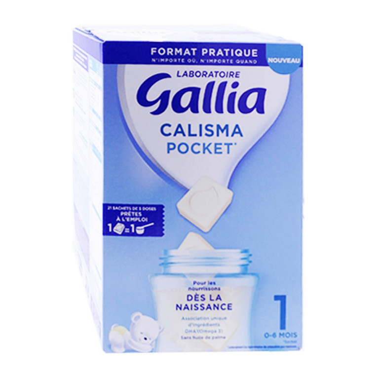 GALLIA CALISMA POCKET 1ER AGE 21 DOSES en vente en ligne sur le site de votre parapharmacie à prix discount est un lait infantile spécialement conçu pour les bébés de 0 à 6 mois. Fabriqué par le laboratoire Gallia, ce lait est formulé avec des ingrédients de qualité pour répondre aux besoins nutritionnels des nourrissons.