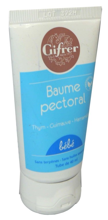 Depuis 1912, le laboratoire GIFRER développe des produits de santé simples et reconnus, gages d’authenticité, de qualité et de tradition pour accompagner la famille au quotidien dans sa quête de bien-être. Le baume pectoral Bébé de GIFRER est un soin spécialement conçu pour rétablir le confort respiratoire de bébé notamment aux moments des changements de saison, et partager un véritable moment de tendresse en le massant délicatement. La formule haute tolérance de ce baume associe de l’hamamélis, du thym et de la guimauve, des extraits de plantes aux propriétés adoucissantes et réconfortantes. 98% d’ingrédients d’origine naturelle, testé sous contrôle dermatologique.