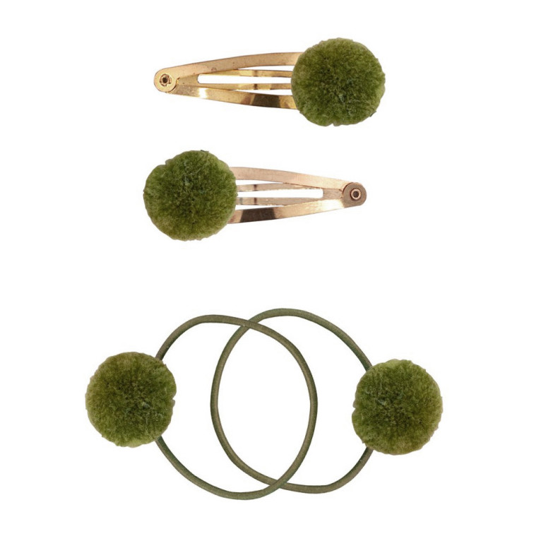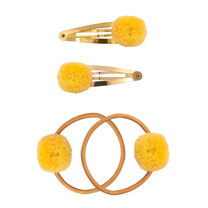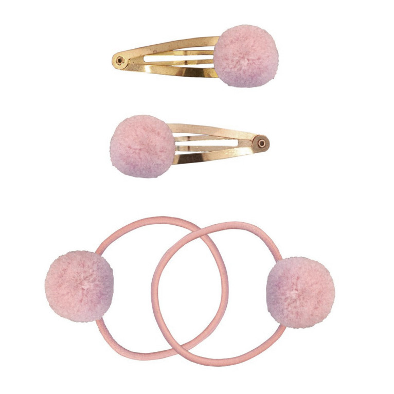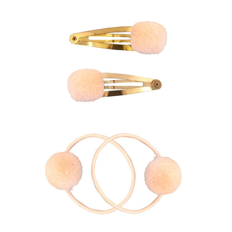 Accessoires pour Cheveux discount de GLOBAL AFFAIRS, 2 jolies barrettes et 2 élastiques pour les cheveux avec des pompons qui plaira aux enfants, dans votre parapharmacie en ligne à prix discount. Coloris au choix