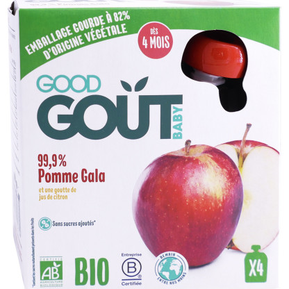Purée de Fruits Bio discount de GOOD GOUT, démarrer la diversification alimentaire en douceur dans votre parapharmacie en ligne à prix discount, avec cette gourde au bon fruit gourmands pour faire découvrir de nouvelles saveurs aux bébés, dès 4 mois Pomme Gala