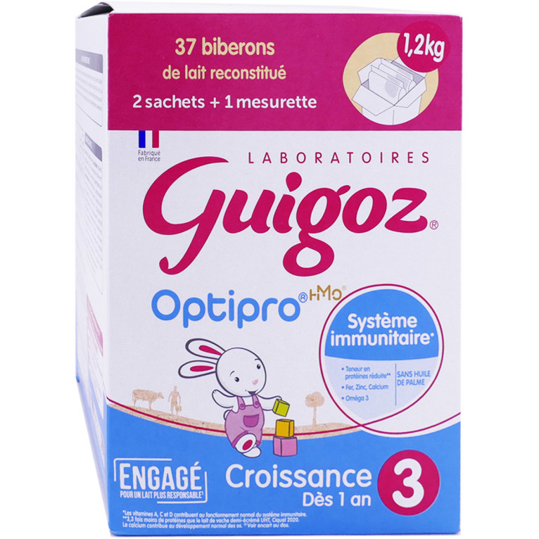 Guigoz Optipro Lait Croissance 3ème Âge 1.2kg en vente en ligne sur le site de votre parapharmacie à prix discount est un lait de croissance spécialement conçu pour les enfants de 1 à 3 ans dans le cadre d'une alimentation diversifiée.