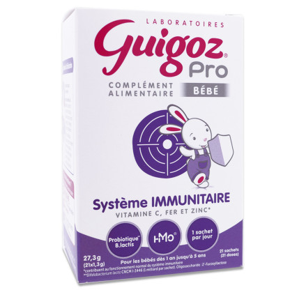 GUIGOZ PRO BÉBÉ SYSTÈME IMMUNITAIRE 21 SACHETS est disponible en vente en ligne à prix discount sur Pharmashopdiscount.