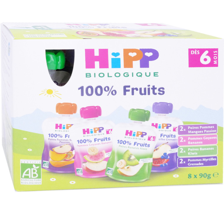 HIPP PACK 8 X 90G 100% FRUITS BIO DES 6 MOIS