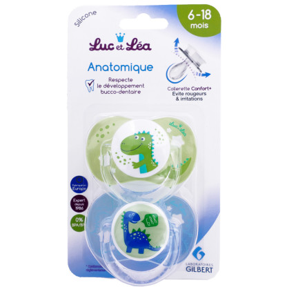 LUC ET LEA SUCETTE ANATOMIQUE 6-18M DINOSAURE 2 SUCETTES