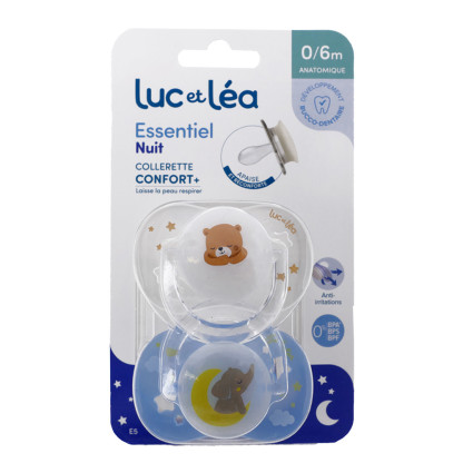 LUC ET LEA SUCETTE ANATOMIQUE ESSENTIEL NUIT LOT DE 2 SUCETTES 0-6M
