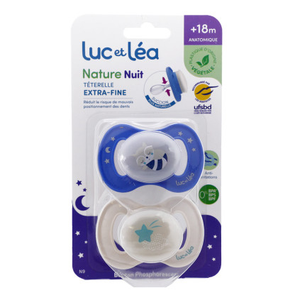 LUC ET LEA SUCETTE ANATOMIQUE NATURE NUIT LOT DE 2 SUCETTES +18M