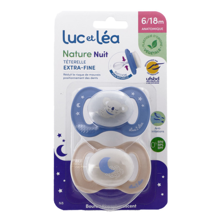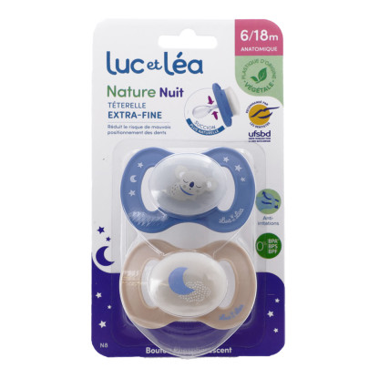 LUC ET LEA SUCETTE ANATOMIQUE NATURE NUIT LOT DE 2 SUCETTES 6-18M