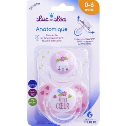 LUC ET LEA SUCETTES SILICONE ANATOMIQUE 0-6 MOIS LOT DE 2