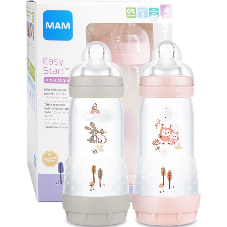 MAM BIBERON EASY START ANTI-COLIQUE 4+ MOIS LOT DE 2X320 ML - COLORIS FILLE