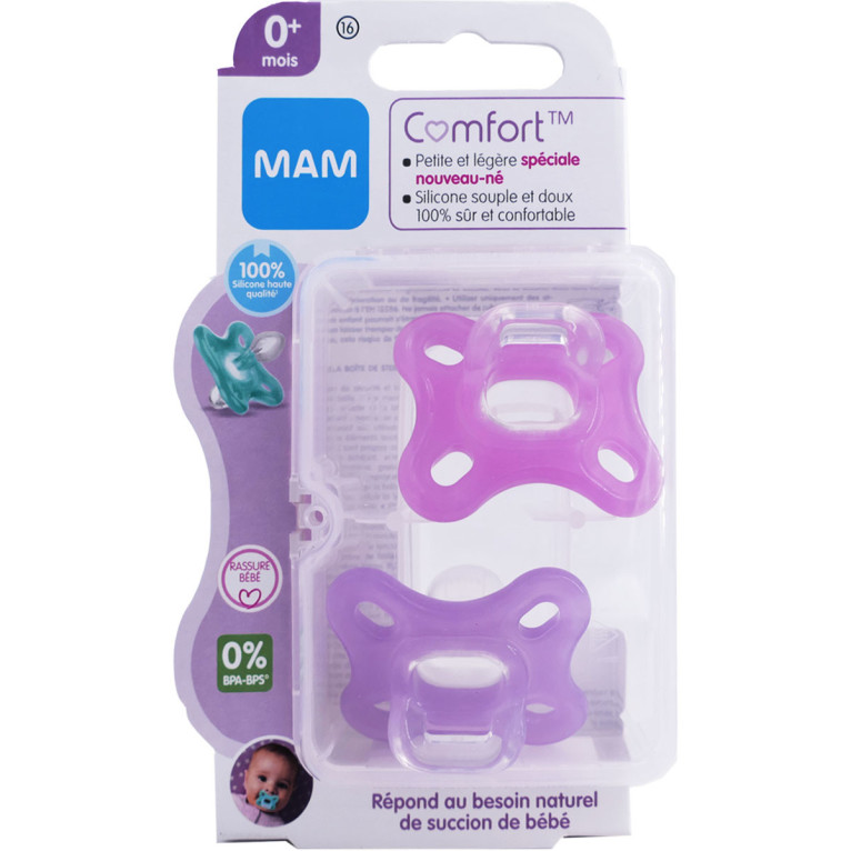 MAM Sucettes Comfort Coloris Fille 0M+ Lot de 2, en vente en ligne sur le site de votre parapharmacie à prix discount. Découvrez les sucettes MAM Comfort Coloris Fille, spécialement conçues pour les bébés dès la naissance.