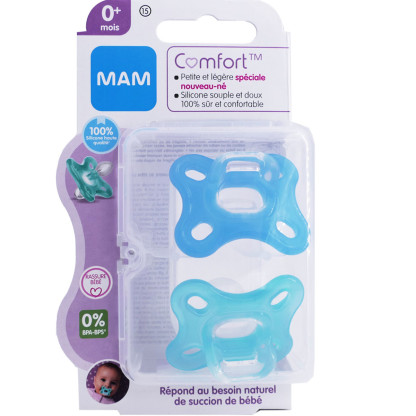 MAM Sucettes Comfort Coloris Garçon 0M+ Lot de 2, en vente en ligne sur le site de votre parapharmacie à prix discount
