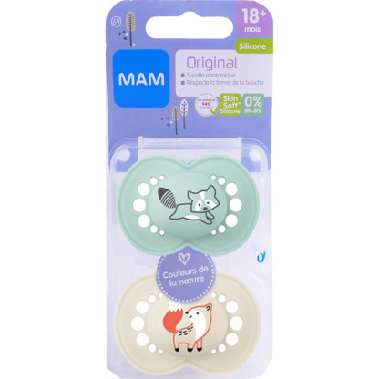 MAM SUCETTES ORIGINAL SILICONE NATURE +18MOIS LOT DE 2 - DECOR 69