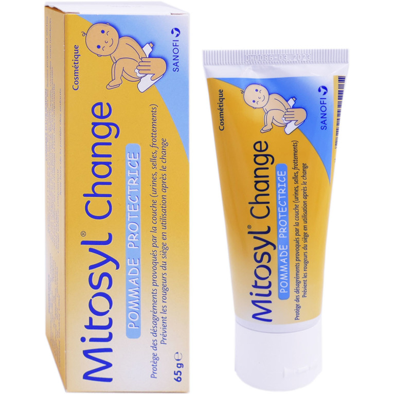 La Pommade Protectrice MITOSYL riche en oxyde de zinc et à base de lanoline et huile végétale de tournesol, protège des rougeurs et irritations provoqués par le frottement des couches, selles et urines, en formant un film protecteur, hydrate et apaise rapidement.
