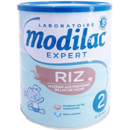 MODILAC est une marque de lait infantile crée en 1984 par le laboratoire SODILAC, spécialement conçue pour offrir un large choix de laits s’approchant au mieux du lait maternel, et répondre aux différents besoins nutritionnels des nourrissons pour accompagner leur croissance de façon harmonieuse. MODILAC Riz 6-12 mois, est un lait de riz qui va permettre de couvrir tous les besoins nutritionnels en cas d'allergies aux protéines de lait de vache et contribuer à la croissance de bébé de 6 à 12 mois. Un lait aux protéines de riz hydrolisées sans lactose à prendre après avoir demandé conseil à un professionnel de santé qualifié.