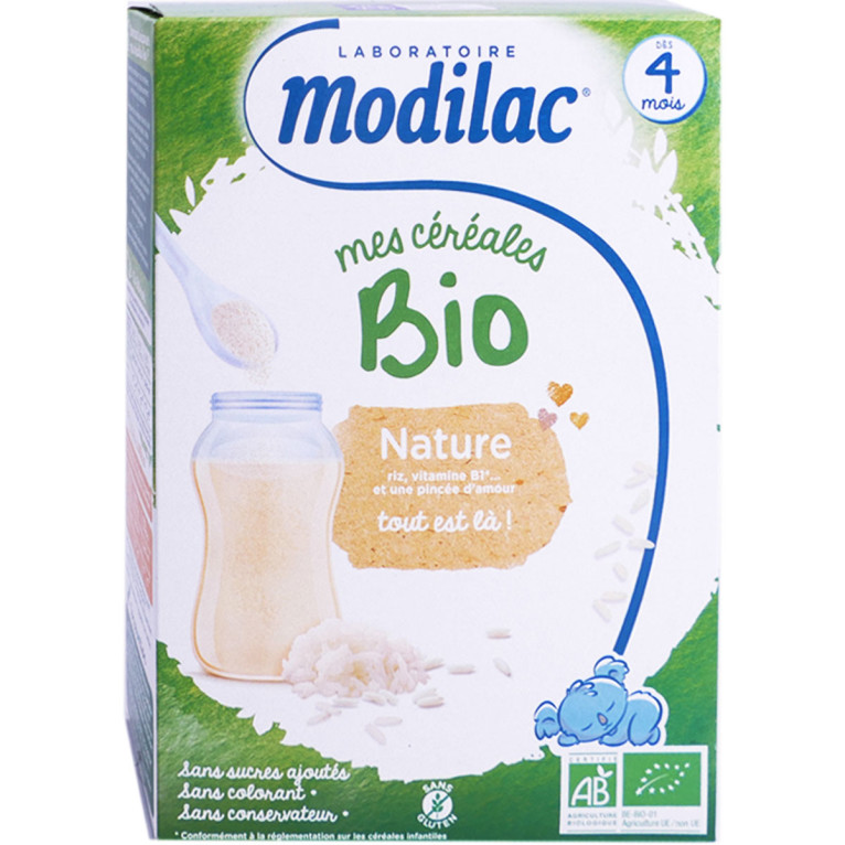 Mes Céréales Bio Nature MODILAC sont élaborées à partir de farine de riz issue de l’agriculture biologique de haute qualité sélectionnée qui ne contiennent ni sucres ajoutés, ni colorant et ni conservateur. Riche en vitamines et minéraux, les céréales sauront répondre aux besoins nutritionnels des enfants. Fondantes, elles accompagnent de façon savoureuse le lait au moment de la diversification alimentaire ! Sans gluten