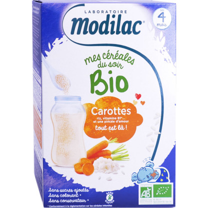 Mes Céréales du Soir Bio Carottes dès 4 mois de MODILAC à prix discount, l’expertise en nutrition infantile dans votre parapharmacie à prix discount, dans des céréales instantanées à donner à bébé le soir, indiquées pour initier bébé à de nouvelles saveurs et accompagner le lait au moment de la diversification alimentaire (dès 4 mois).