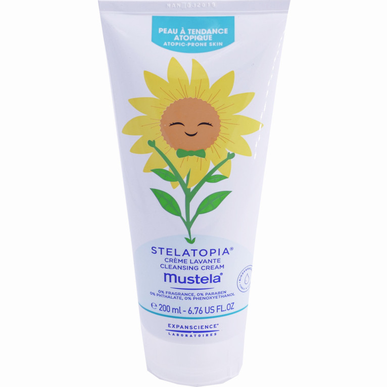 Dans les années 50, un produit totalement innovant révolutionne les soins bébé : un produit 2en1 nettoyant et adoucissant à l’odeur évocatrice : le lait emblématique MUSTELA. 60 ans plus tard, MUSTELA propose toujours des produits sûrs, efficaces, aux formules les plus naturelles possibles pour protéger la peau sensible des bébés. La gamme de soins MUSTELA Dermo-pédiatrie est composée de produits conçus avec des pédiatres et des dermatologues pour répondre aux troubles cutanés des peaux fragiles et encore immatures des tout-petits. Les soins STELATOPIA répondent aux besoins spécifiques des peaux sèches à tendance atopiques. La crème lavante STELATOPIA de MUSTELA, qui développe une mousse délicate au contact de l’eau, est spécialement conçue pour laver en douceur sans agresser ni dessécher et apaiser la peau à tendance atopique de bébé. Composée d’oléodistillat de tournesol et d’extraits de glycine, cette crème lavante apaise les épidermes fragilisés, stimule la synthèse des lipides, renforce la barrière cutanée et rétablit confort et souplesse. Sans paraben, sans phtalate, sans phénoxyéthanol, sans huile essentielle, sans alcool, sans chlorphénésine, sans parfum, sans savon, sans colorant. Formule haute tolérance et hypoallergénique testée sous contrôles dermatologiques et pédiatriques.