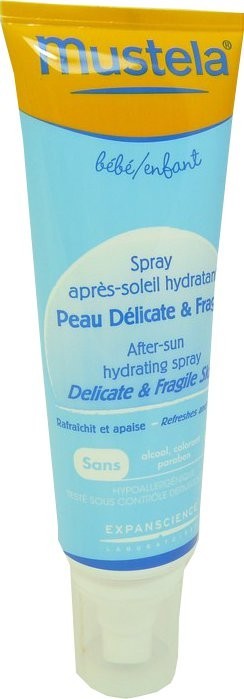 Dans les années 50, un produit totalement innovant révolutionne les soins bébé : un produit 2en1 nettoyant et adoucissant à l’odeur évocatrice : le lait emblématique MUSTELA. 60 ans plus tard, MUSTELA propose toujours des produits sûrs, efficaces, aux formules les plus naturelles possibles pour protéger la peau sensible des bébés. La gamme de soins MUSTELA-SOLAIRES est composée de produits haute-tolérance pour protéger efficacement des UVA/UVB la peau vulnérable de bébé tout en préservant son capital cellulaire. Le spray après-soleil MUSTELA SOLAIRES, à la texture fluide et légère facile à appliquer grâce à son flacon-pompe, composé de 87% d’ingrédients d’origine naturelle, est spécialement conçu pour rafraîchir, hydrater et apaiser la peau fragile de bébé après l’exposition solaire. Composé d’huile de jojoba, de beurre de cupuaçu et d’un actif breveté issu de l’avocat, ce spray nourrit, régénère, hydrate, protège, apaise les épidermes délicats et renforce leur barrière cutanée. Formule haute tolérance et hypoallergénique testée sous contrôles dermatologiques et pédiatriques. Peut s’utiliser dès la naissance.