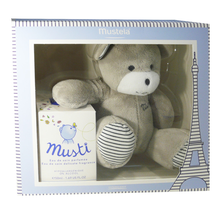 Le coffret Musti Garçon de MUSTELA à prix discount dans votre parapharmacie en ligne, contient un joli ourson tout doux et une eau de soin parfumée Musti. Garçon