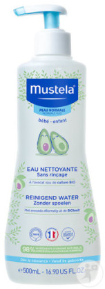 La gamme Bébé Enfant de MUSTELA est composée de produits à base d’ingrédients très doux d’origine naturelle hypoallergéniques, sans paraben, sans phtalate ni phenoxyethanol pour le plus grand respect des cheveux et de la peau fragiles des tout-petits dès la naissance. L’Eau Nettoyante Sans Rinçage est un soin très doux qui respecte la peau fragile des bébés et des jeunes enfants par son pH neutre. Elle nettoie sans agresser le visage et les fesses des tout-petits. Elle élimine toutes les salissures et résidus de crème sur la peau, hydrate, apaise des inconforts (rougeurs, irritations) et renforce le film protecteur de la peau pour protéger les cellules de l’épiderme grâce aux tensio-actifs doux (extrait de feuille et de racine de saponaire), à sa richesse en Perséose d’avocat d’origine naturelle et biologique (nouvelle formule brevetée), à l’extrait de feuille d’aloe vera ainsi qu’à l’allantoïne. Après ce soin délicat, la peau de bébé est délicatement parfumée, très douce et nette. Pratique, il n’est pas nécessaire de rincer. 98% d’ingrédients d’origine naturelle. Avocat cultivé en filière responsable issu de l’économie circulaire. Vegan