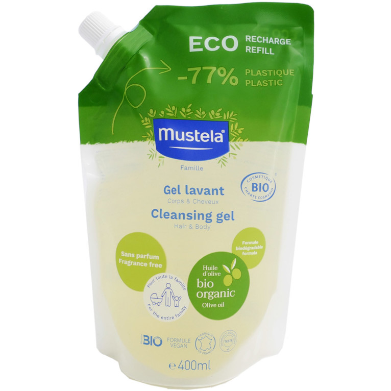 MUSTELA GEL LAVANT BIO ECO RECHARGE 400ML, en vente en ligne, sur le site de votre parapharmacie à prix discount.