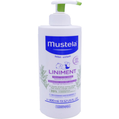 Dans les années 50, un produit totalement innovant révolutionne les soins bébé : un produit 2en1 nettoyant et adoucissant à l’odeur évocatrice : le lait emblématique MUSTELA. 60 ans plus tard, MUSTELA propose toujours des produits sûrs, efficaces, aux formules les plus naturelles possibles pour protéger la peau sensible des bébés. La gamme de soins du change MUSTELA Bébé est composée de produits de haute tolérance conçus pour prendre soin de la peau fragile des fesses de bébé à chaque change. Le Liniment MUSTELA, à la formule composée de 99% d’ingrédients d’origine naturelle, à la texture riche et onctueuse, est spécialement conçu pour nettoyer en douceur la peau fragile du siège de bébé. Composé d’huile d’olive extra-vierge riche en omégas 6 et 9, ce liniment nourrit, prévient les rougeurs et forme un film protecteur qui isole l’épiderme de l’humidité et des agressions. Sans paraben, sans parfum, sans phtalate, sans phénoxyéthanol, sans huile minérale. Formule haute tolérance et hypoallergénique testée sous contrôles dermatologiques et pédiatriques. S’utilise dès la naissance y compris chez les bébés sortis de néonatologie.