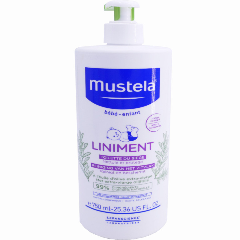 Dans les années 50, un produit totalement innovant révolutionne les soins bébé : un produit 2en1 nettoyant et adoucissant à l’odeur évocatrice : le lait emblématique MUSTELA. 60 ans plus tard, MUSTELA propose toujours des produits sûrs, efficaces, aux formules les plus naturelles possibles pour protéger la peau sensible des bébés. La gamme de soins du change MUSTELA Bébé est composée de produits de haute tolérance conçus pour prendre soin de la peau fragile des fesses de bébé à chaque change. Le Liniment Toilette du siège MUSTELA, à la formule composée de 98% d’ingrédients d’origine naturelle, à la texture riche et onctueuse, est spécialement conçu pour nettoyer en douceur la peau fragile du siège de bébé. Composé d’huile d’olive extra-vierge riche en omégas 6 et 9, ce liniment nourrit, prévient les rougeurs et forme un film protecteur qui isole l’épiderme de l’humidité et des agressions. Sans paraben, sans parfum, sans phtalate, sans phénoxyéthanol, sans huile minérale. Formule haute tolérance et hypoallergénique testée sous contrôles dermatologiques et pédiatriques. S’utilise dès la naissance.
