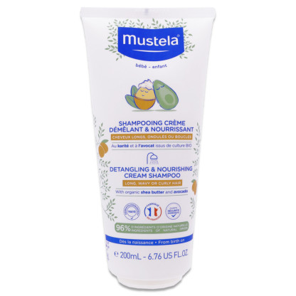 MUSTELA SHAMPOOING CREME DEMELANT & NOURRISSANT 200ML est en vente en ligne sur le site de votre parapharmacie à prix discount, conçu pour démêler et nourrir les cheveux longs, ondulés ou bouclés des bébés et enfants.