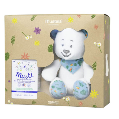 Le coffret Musti discount de MUSTELA contient un joli ourson tout doux et une eau de soin parfumée Musti (50ml), à prix discount dans votre parapharmacie en ligne.