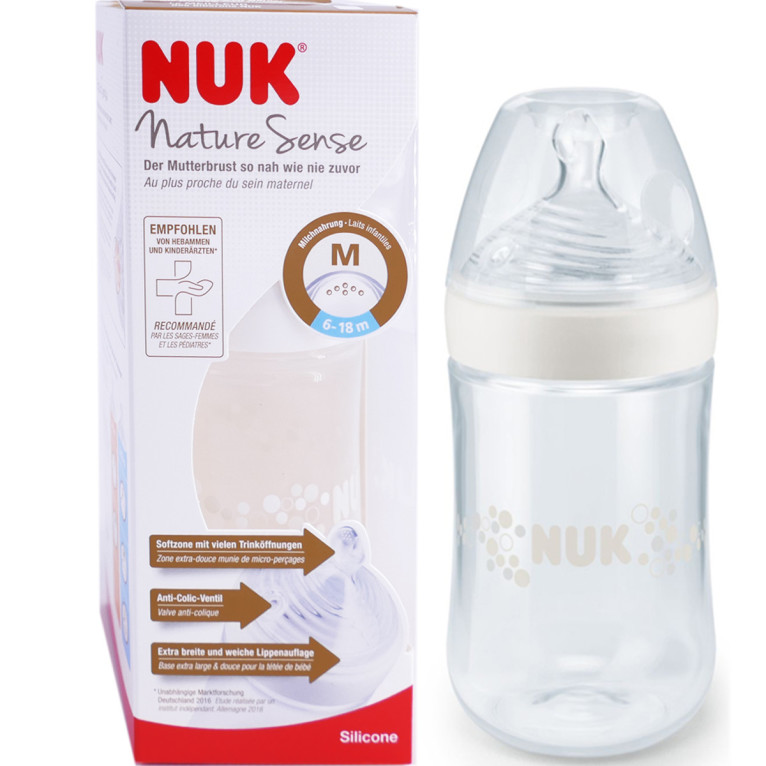 Le Biberon Nature Sense 6-18 mois discount de NUK, le meilleur dès les premières heures de la vie, dans votre parapharmacie en ligne à prix discount, pour un biberon adapté aux bébés dès 6 mois. Coloris selon disponibilité. Taille M 260ml