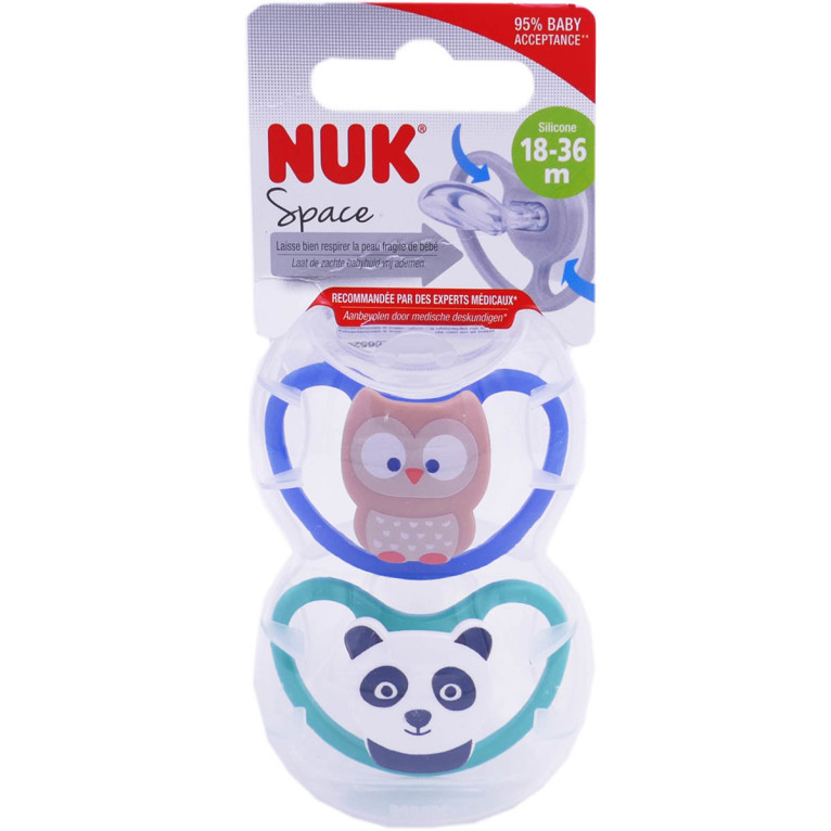 Les sucettes Space de NUK discount dans votre parapharmacie en ligne, la sucette qui apaise et rassure les bébés de 18 à 36 mois, tout en respectant le développement de la bouche. Coloris et motifs selon disponibilité
