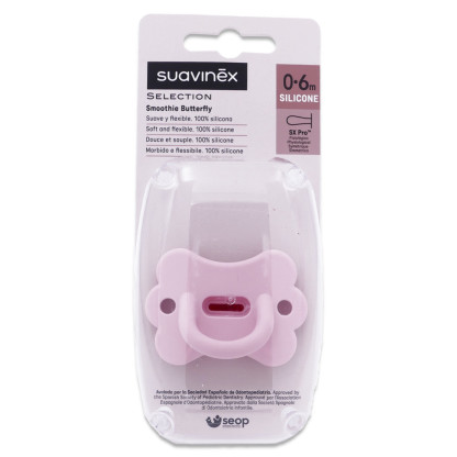 SUAVINEX SUCETTE SILICONE SMOOTHIE BUTTERFLY 0-6MOIS ROSE