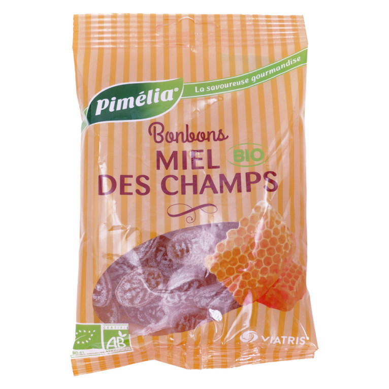 PIMELIA BIO BONBONS MIEL DES CHAMPS 100G, une douceur naturelle en vente en ligne sur le site de votre parapharmacie à prix discount, pour un moment de plaisir gourmand et authentique. Savourez la délicatesse de ces bonbons au miel des champs, préparés à partir d'ingrédients biologiques soigneusement sélectionnés