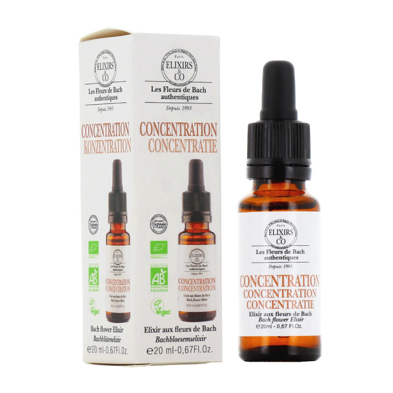 CONCENTRATION d’Elixirs & CO, des fleurs de Bach authentiques dans une préparation pour boisson à diluer dans votre parapharmacie en ligne à prix discount.