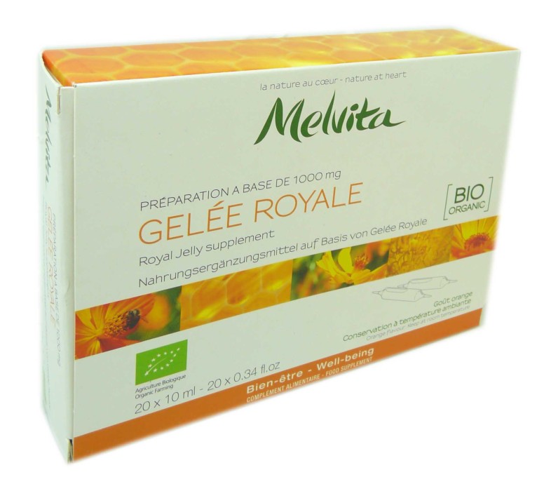 MELVITA, marque pionnière de la cosmétique BIO, est née de la passion d’hommes pour le miel, cette merveilleuse substance située entre le mode animal et végétal. Depuis près de 40 ans, MELVITA développe des produits dermo-cosmétiques en allégeant au maximum son impact sur la planète et en protégeant la nature et les abeilles. MELVITA offre la garantie de produits composés d’ingrédients naturels et biologiques, exempts de matières pétrochimiques peu biodégradables, pour toujours offrir le meilleur et le plus beau de la nature. Et parce la beauté est globale, MELVITA a conçu des gourmandises issues des trésors de la ruche qui ravissent les papilles et font s’épanouir bien-être et harmonie. La gelée royale bio de MELVITA assure un apport par ampoule de 1000mg de gelée royale, cette substance unique sécrétée par les jeunes abeilles nourricières pour nourrir leur reine et lui assurer une longévité exceptionnelle.