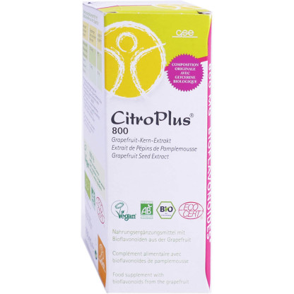 CITROPLUS 800, un complément alimentaire aux extraits de pamplemousse BIO en solution buvable 100ml sans alcool avec de la Vitamine C, dans votre parapharmacie en ligne discount.