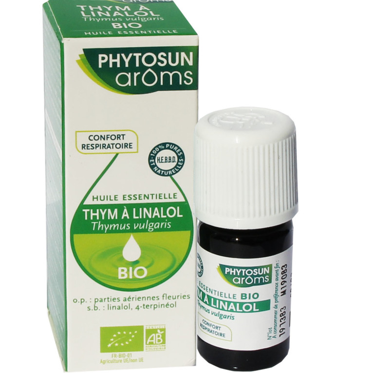 Huile essentielle de Thym à Linalol Bio PHYTOSUN AROMS, l'huile essentielle composé de plantes, en flacon, dans votre parapharmacie en ligne à prix discount.