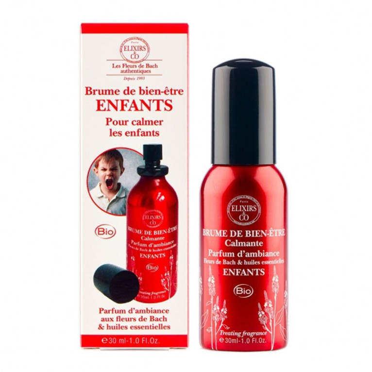 Les brumes de bien-être ELIXIRS & CO sous forme de spray sans gaz, sont conçues avec des Fleurs de Bach bio et des huiles essentielles bio pour à tout moment de la journée et dans tous les lieux, être utilisées pour un moment de bien-être. La brume bien-être Enfants composé de nombreuses fleurs de Bach bio (Houx, Dame d’onze heure, Saule, Impatiente, Verveine) et d’huiles essentielles bio (clémentine bio, orange douce bio, mandarine rouge bio, litsée bio), va aider à détendre et apaiser lors d’agitations ou de colère, réconforter, relâcher les tensions, et redonner la joie de vivre en cas de tristesse ou de chagrins. Pratique par le format spray, la brume bien-être Conflits peut être emportée partout avec soi pour une utilisation à tout moment de la journée.