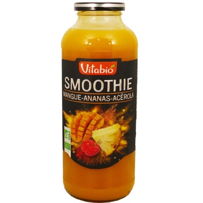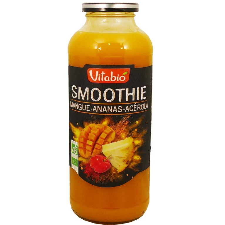 Le smoothie de Mangue Ananas et Acérola 100% jus Bio de VITABIO à prix discount dans votre parapharmacie en ligne, la force des fruits en bouteille !